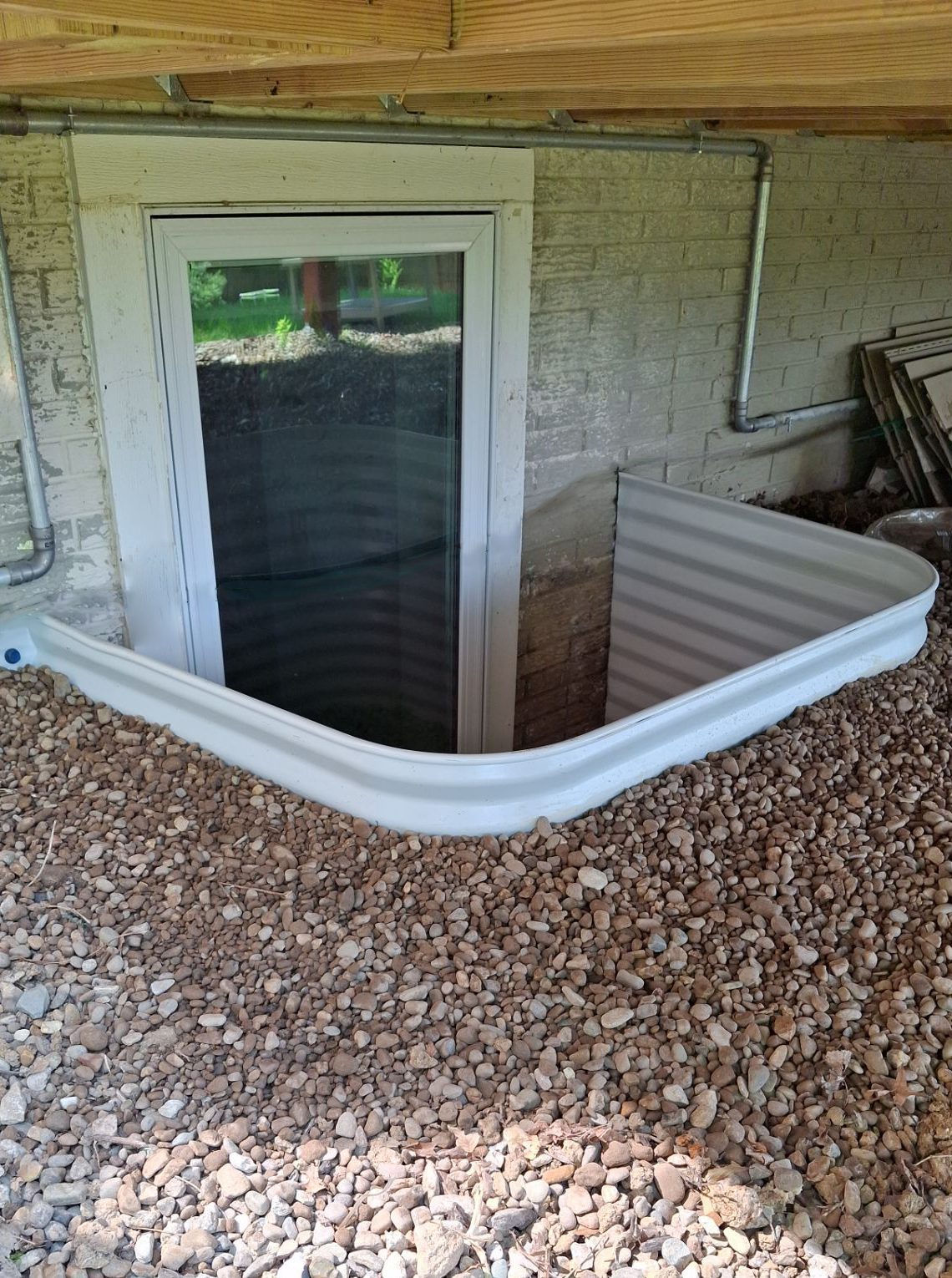 Casement: 32″ x 48″ crank-out window with a 55″ x 36″ x 60″ white-finish window well.